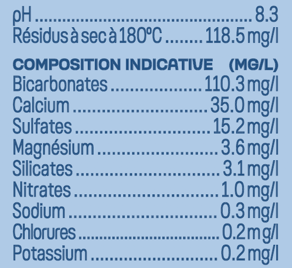➡️ Une eau faiblement minéralisée, adaptée aux biberons et agréable pour toute la famille.